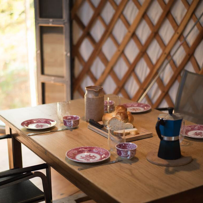 The Yurt has a fully equipped kitchen, a private bathroom, and a relaxing shaded terrace. With its blend of tradition, comfort, and closeness to nature, it offers a memorable way to experience the farm in every season.