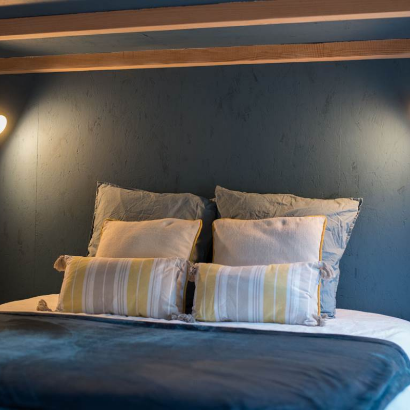 Set on La Goursaline’s hillside, this 65 m² traditional yurt is one of the four gîtes woven into the farm’s wider living landscape. Originally handcrafted in Mongolia, it brings a comforting sense of warmth and craft, while offering the kind of a spacious layout that makes it particularly well suited to families or small groups.