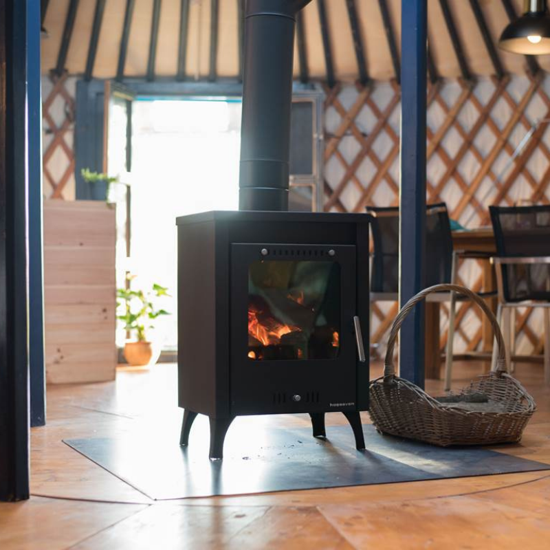 Inside, the circular space feels open and welcoming, with a large double bed, two single beds on the mezzanine, a sofa that can be converted into an extra bed, and the possibility of adding another mattress on request. The result is a stay that can comfortably supplements your outdoor days with intimate moments, whether that means cooking together, a yoga routine, or cuddling up by the fire.