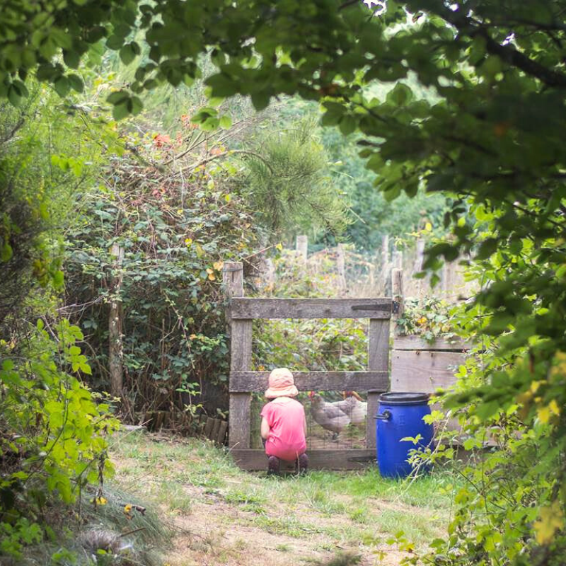 On their 3.3-hectare hillside, vegetable gardens, fruit trees, animals, chestnut woodland, and unusual gîtes are not isolated features, but come together in symbiosis. Over the years of care and devotion, they have cultivated a place where hospitality, biodiversity, food production, and ecological learning are all entangled intentionally: From the forest providing for the wood-heated gîtes to the careful use of borehole water that finds its way back into the landscape.